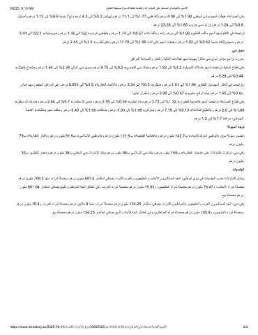 روﺎﺑﻣإ مﮭﺳ ضﻔﺧﻧا ﻖﻓارﻣﻟا ﻲﻓو .مھرد 0.851 ﻰﻟإ %3.5 «ﺔﯾرﺎﻘﻌﻟا دﺎﺣﺗﻻا»و مھرد 3.34 ﻰﻟإ %0.3 «موﻛﯾﺗ»و مھرد 1.01 ﻰﻟإ %1.94 رﯾوطﺗﻠﻟ رﺎﯾد مﮭﺳأ رﺎﻘﻌﻟا ﻲﻓ تﻌﺟارﺗو