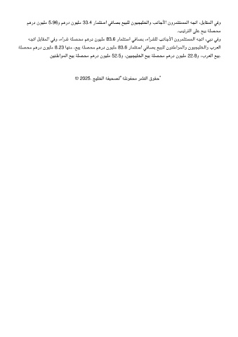ﻪﺠﺗا ﻞﺑﺎﻘﻤﻟا ﻓو ،ءاﺮﺷ ﺔﻠﺼﺤﻣ ﻢﻫرد نﻮﻴﻠﻣ 83.6 رﺎﻤﺜﺘﺳا ﻓﺎﺼﺑ ،ءاﺮﺸﻠﻟ ﺐﻧﺎﺟﻷا نوﺮﻤﺜﺘﺴﻤﻟا ﻪﺠﺗا ،ﺑد ﻓو