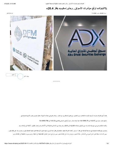 9/12/25, 9:10 AM «ﺞﯾﻠﺧﻟا ﺔﻔﯾﺣﺻ | %26.4 زﻔﻘﯾ «موﻛﺳاروأ»و ..قاوﺳﻷا تارﺷؤﻣ ﻊﻓرﺗ «كوﻧﺑﻟا