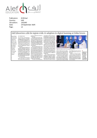 Publication: Al Etihad Country: UAE Circulation: 109,640 Date: 19 September 2025 Page: 12