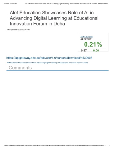 9/22/25, 11:47 AM Alef Education Showcases Role of AI in Advancing Digital Learning at Educational Innovation Forum in Doha - Mubasher Info