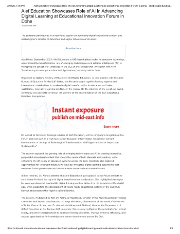 9/19/25, 1:36 PM Alef Education Showcases Role of AI in Advancing Digital Learning at Educational Innovation Forum in Doha - Middle East Busines…