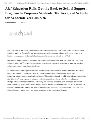 9/4/25, 9:33 AM Alef Education Rolls Out the Back-to-School Support Program to Empower Students, Teachers, and Schools for Academic Year 202…