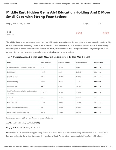 9/22/25, 11:53 AM Middle East Hidden Gems Alef Education Holding And 2 More Small Caps with Strong Foundations