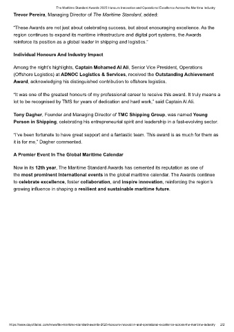 Trevor Pereira, Managing Director of The Maritime Standard, added: