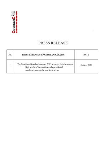 . PRESS RELEASE No. PRESS RELEASES (ENGLISH AND ARABIC) DATE 1 The Maritime Standard Awards 2025 winners list showcases October 2025 high levels of innovation and operational excellence across the maritime sector