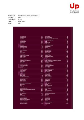 Publication: Construction Week Middle East Country: UAE Circulation: 9,275 Date: June 2025 Page: 212