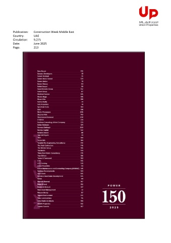 Publication: Construction Week Middle East Country: UAE Circulation: 9,275 Date: June 2025 Page: 213