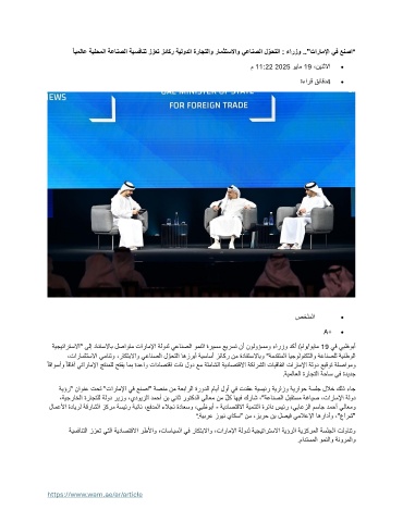 ةيجيتارتسلاا" ىلإ دانتسلااب لصاوتم تاراملإا ةلودل يعانصلا ومنلا ةريسم عيرست نأ نولوؤسمو ءارزو دكأ /ماو/ويام 19 يف يبظوبأ