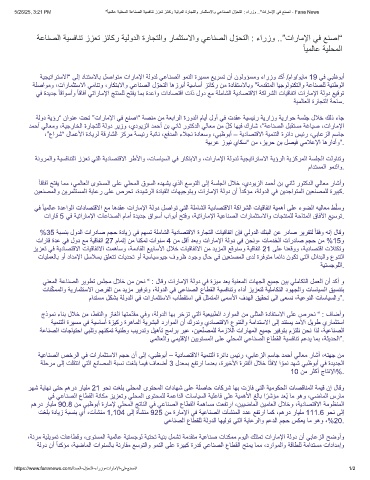 5/26/25, 3:21 PM "ً ﺎﯾﻣﻟﺎﻋ ﺔﯾﻠﺣﻣﻟا ﺔﻋﺎﻧﺻﻟا ﺔﯾﺳﻓﺎﻧﺗ ززﻌﺗ زﺋﺎﻛر ﺔﯾﻟودﻟا ةرﺎﺟﺗﻟاو رﺎﻣﺛﺗﺳﻻاو ﻲﻋﺎﻧﺻﻟا ل ّ وﺣﺗﻟا : ءارزو .."تارﺎﻣﻹا ﻲﻓ ﻊﻧﺻا - Fana News
