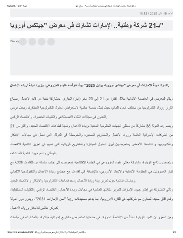 5/26/25, 10:51 AM 24 ﻊﻗوﻣ - "ﺎﺑوروأ سﻛﺗﯾﺟ" ضرﻌﻣ ﻲﻓ كرﺎﺷﺗ تارﺎﻣﻹا ..ﺔﯾﻧطو ﺔﻛرﺷ 21ـﺑ