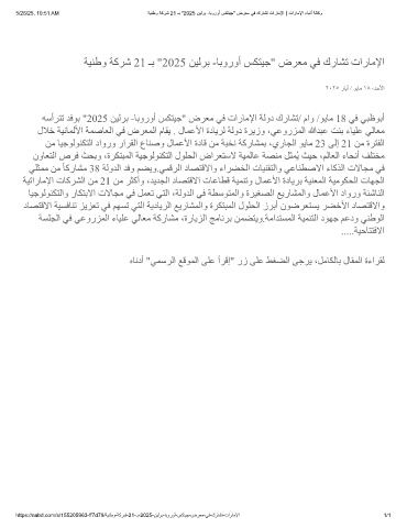 5/26/25, 10:51 AM ﺔﯾﻧطو ﺔﻛرﺷ 21 ـﺑ "2025 نﯾﻟرﺑ -ﺎﺑوروأ سﻛﺗﯾﺟ" ضرﻌﻣ ﻲﻓ كرﺎﺷﺗ تارﺎﻣﻹا | تارﺎﻣﻹا ءﺎﺑﻧأ ﺔﻟﺎﻛو