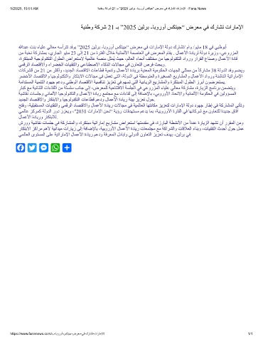 5/26/25, 10:51 AM ﺔﯾﻧطو ﺔﻛرﺷ 21 ـﺑ "2025 نﯾﻟرﺑ -ﺎﺑوروأ سﻛﺗﯾﺟ" ضرﻌﻣ ﻲﻓ كرﺎﺷﺗ تارﺎﻣﻹا - Fana News