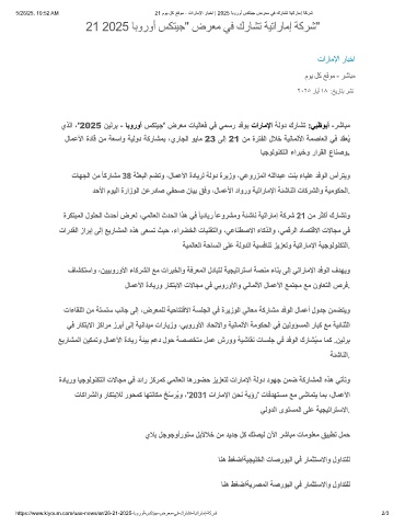 5/26/25, 10:52 AM 21 موﯾ لﻛ ﻊﻗوﻣ - تارﺎﻣﻹا رﺎﺑﺧا | 2025 ﺎﺑوروأ سﻛﺗﯾﺟ ضرﻌﻣ ﻲﻓ كرﺎﺷﺗ ﺔﯾﺗارﺎﻣإ ﺔﻛرﺷ
