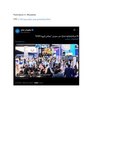 Publication: X - Mubasher Link: 21 2025 ابوروأ سكتيج" ضرعم يف كراشت ةيتارامإ ةكرش"