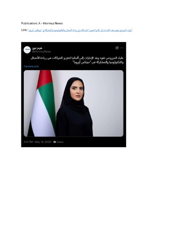 Publication: X – Hormuz News Link: ابوروأ سكتيج" يف ةكراشلماو ايجولونكتلاو لامعلأا ةداير يف تاكارشلا زيزعتل اينالمأ ىلإ تاراملإا دفو دوقت يعورزلما ءايلع"