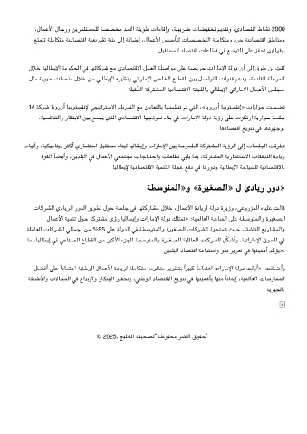 لﺎﻤﻋﻷا ﺔﻴﻤﻨﺗ لﻮﺣ ﺔﻛﺮﺘﺸﻣ ىؤر ﺎﻴﻟﺎﻄﻳإو تارﺎﻣﻹا ﺔﻟود ﻚﻠﺘﻤﺗ» :ﺔﻴﻤﻟﺎﻌﻟا ﺔﺣﺎﺴﻟا ﻠﻋ ﺔﻄﺳﻮﺘﻤﻟاو ةﺮﻴﻐﺼﻟا