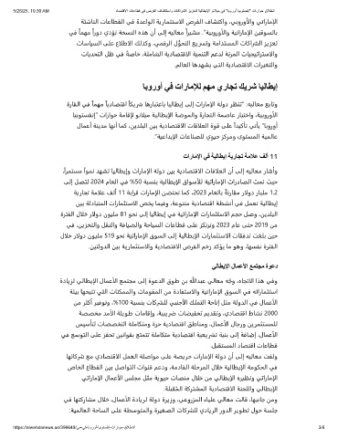 ةرﺎﻘﻟا ﻲﻓ ًﺎﻤﻬﻣ ًﺎﻳدﺎﺼﺘﻗا ًﺎﻜﻳرش ﺎﻫرﺎﺒﺘﻋﺎﺑ ﺎﻴﻟﺎﻄﻳإ ﻰﻟإ تارﺎﻣإلا ﺔﻟود ﺮﻈﻨﺗ“ :ﻪﻴﻟﺎﻌﻣ ﻊﺑﺎﺗو