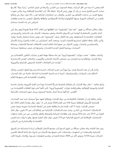 ﺔﻤﺻﺎﻋ رﺎﻴﺘﺧاو ،ﺔﻴﺑوروألا ةرﺎﻘﻟا ﻲﻓ ًﺎﻤﻬﻣ ًﺎﻳدﺎﺼﺘﻗا ًﺎﻜﻳرش ﺎﻫرﺎﺒﺘﻋﺎﺑ ﺎﻴﻟﺎﻄﻳإ ﻰﻟإ تارﺎﻣإلا ﺔﻟود ﺮﻈﻨﺗ ” :ﻪﻴﻟﺎﻌﻣ ﻊﺑﺎﺗو