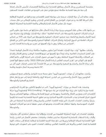 ﺔﻴﻟﺎﻄﻳإلا ﺔﻣﻮﻜﺤﻟا ﻲﻓ ﺎﻬﺋﺎﻛرش ﻊﻣ يدﺎﺼﺘﻗالا ﻞﻤﻌﻟا ﺔﻠﺻاﻮﻣ ﻰﻠﻋ ﺔﺼﻳﺮﺣ تارﺎﻣإلا ﺔﻟود نأ ﻰﻟإ ﻪﻴﻟﺎﻌﻣ ﺖﻔﻟو