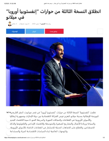 5/26/25, 10:32 AM ﺞﯾﻠﺧﻟا تﺎﻋوﺿوﻣ - وﻧﻼﯾﻣ ﻲﻓ "ﺎﺑوروأ ﺎﯾﺑوﺗﺳﻔﻧإ" تاراوﺣ نﻣ ﺔﺛﻟﺎﺛﻟا ﺔﺧﺳﻧﻟا قﻼطﻧا