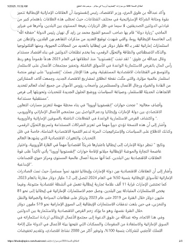 رﺎﻴﺘﺧاو ،ﺔﻴﺑوروألا ةرﺎﻘﻟا ﻲﻓ ًﺎﻤﻬﻣ ًﺎﻳدﺎﺼﺘﻗا ًﺎﻜﻳرش ﺎﻫرﺎﺒﺘﻋﺎﺑ ﺎﻴﻟﺎﻄﻳإ ﻰﻟإ تارﺎﻣإلا ﺔﻟود ﺮﻈﻨﺗ ” :ﻊﺑﺎﺗو