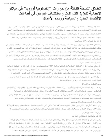 ﺔﯾﻟﺎطﯾﻹا ﺔﺿوﻣﻟاو ةرﺎﺟﺗﻟا ﺔﻣﺻﺎﻋ رﺎﯾﺗﺧاو ،ﺔﯾﺑوروﻷا ةرﺎﻘﻟا ﻲﻓ ً ﺎﻣﮭﻣ ً ﺎﯾدﺎﺻﺗﻗا ً ﺎﻛﯾرﺷ ﺎھرﺎﺑﺗﻋﺎﺑ ﺎﯾﻟﺎطﯾإ ﻰﻟإ تارﺎﻣﻹا ﺔﻟود رظﻧﺗ" :ﮫﯾﻟﺎﻌﻣ ﻊﺑﺎﺗو