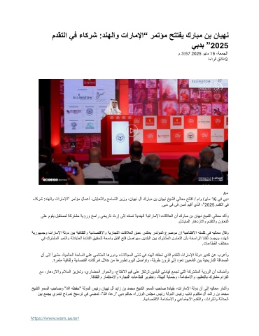 مدقتلا يف ءاكرش : دنهلاو تاراملإا “ رمتؤم حتتفي كرابم نب نايهن