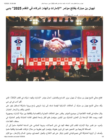 5/26/25, 10:38 AM نطوﻟا ةدﯾرﺟ › ﻲﺑدﺑ ”2025 مدﻘﺗﻟا ﻲﻓ ءﺎﻛرﺷ :دﻧﮭﻟاو تارﺎﻣﻹا“ رﻣﺗؤﻣ ﺢﺗﺗﻔﯾ كرﺎﺑﻣ نﺑ نﺎﯾﮭﻧ