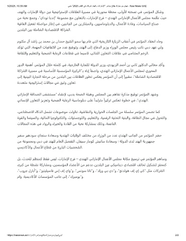 5/26/25, 10:39 AM ﻲﺑدﺑ ”2025 مدﻘﺗﻟا ﻲﻓ ءﺎﻛرﺷ :دﻧﮭﻟاو تارﺎﻣﻹا“ رﻣﺗؤﻣ ﺢﺗﺗﻔﯾ كرﺎﺑﻣ نﺑ نﺎﯾﮭﻧ - Nas News UAE