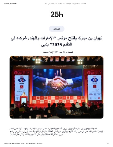 5/26/25, 10:39 AM 25 – ﻲﺑدﺑ ”2025 مدﻘﺗﻟا ﻲﻓ ءﺎﻛرﺷ :دﻧﮭﻟاو تارﺎﻣﻹا“ رﻣﺗؤﻣ ﺢﺗﺗﻔﯾ كرﺎﺑﻣ نﺑ نﺎﯾﮭﻧH
