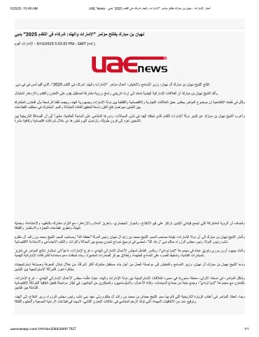 5/26/25, 10:40 AM UAE News - ﻲﺑدﺑ "2025 مدﻘﺗﻟا ﻲﻓ ءﺎﻛرﺷ :دﻧﮭﻟاو تارﺎﻣﻹا" رﻣﺗؤﻣ ﺢﺗﺗﻔﯾ كرﺎﺑﻣ نﺑ نﺎﯾﮭﻧ - تارﺎﻣﻹا رﺎﺑﺧأ