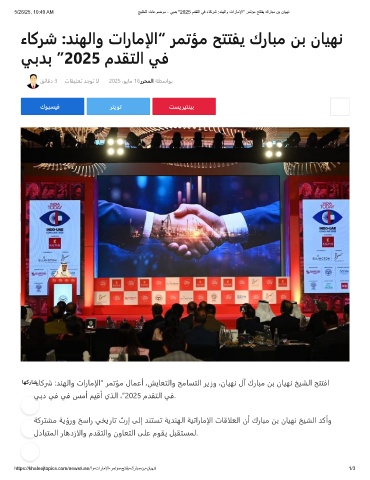 5/26/25, 10:40 AM ﺞﯾﻠﺧﻟا تﺎﻋوﺿوﻣ - ﻲﺑدﺑ "2025 مدﻘﺗﻟا ﻲﻓ ءﺎﻛرﺷ :دﻧﮭﻟاو تارﺎﻣﻹا" رﻣﺗؤﻣ ﺢﺗﺗﻔﯾ كرﺎﺑﻣ نﺑ نﺎﯾﮭﻧ