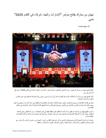 ميقأ يذلا ،” 2025 مدقتلا يف ءاكرش :دنهلاو تاراملإا“ رمتؤم لامعأ ،شياعتلاو حماستلا ريزو ،نايهن لآ كرابم نب نايهن خيشلا حتتفا