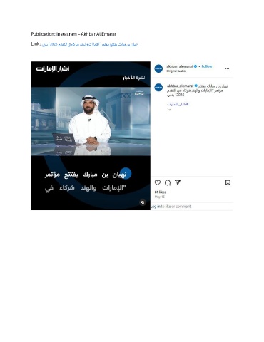 Publication: Instagram – Akhbar Al Emarat Link: يبدب "2025 مدقتلا يف ءاكرش دنهلاو تاراملإا" رمتؤم حتتفي كرابم نب نايهن