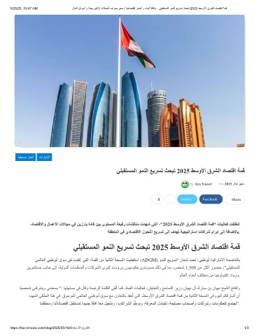 ،ﻢﮭﻤﻟا ﻰﻘﺘﻠﻤﻟا اﺬھ ﻲﻓ .قﻮﻣﺮﻤﻟا ﻲﻤﻟﺎﻌﻟا ﻲﺒظﻮﺑأ قﻮﺳ ﻊﻣ نوﺎﻌﺘﻟﺎﺑ ﺪﻘﻌُﺗ ﻲﺘﻟا ،ﻂﺳوﻷا قﺮﺸﻟا دﺎﺼﺘﻗا ﺔﻤﻗ ﻦﻣ ﺔﯿﻧﺎﺜﻟا ﺔﺨﺴﻨﻟا ﻲﻓ مﻮﯿﻟا ﻢﻜﻛرﺎﺷأ نأ