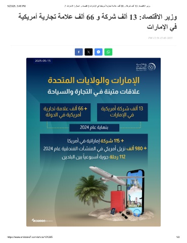 5/23/25, 3:46 PM 7 تارﺎﻣﻻا | لﺎﻣﻋا و دﺎﺻﺗﻗا | تارﺎﻣﻹا ﻲﻓ ﺔﯾﻛﯾرﻣأ ﺔﯾرﺎﺟﺗ ﺔﻣﻼﻋ فﻟأ 66 و ﺔﻛرﺷ فﻟأ 13 :دﺎﺻﺗﻗﻻا رﯾزو ﺔﯿﻜﯾﺮﻣأ ﺔﯾرﺎﺠﺗ ﺔﻣﻼﻋ ﻒﻟأ 66 و ﺔﻛﺮﺷ ﻒﻟأ 13 :دﺎﺼﺘﻗﻻا ﺮﯾزو تارﺎﻣﻹا ﻲﻓ PM 12:56 15-05-2025 https://www.emirates7.com/article/131265 1/2