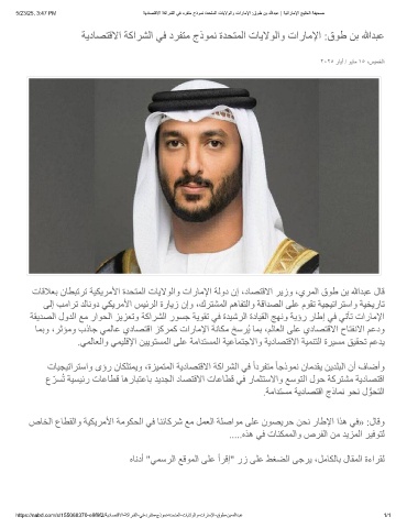 5/23/25, 3:47 PM ﺔﯾدﺎﺻﺗﻗﻻا ﺔﻛارﺷﻟا ﻲﻓ درﻔﺗﻣ جذوﻣﻧ ةدﺣﺗﻣﻟا تﺎﯾﻻوﻟاو تارﺎﻣﻹا :قوط نﺑ ﷲدﺑﻋ | ﺔﯾﺗارﺎﻣﻹا ﺞﯾﻠﺧﻟا ﺔﻔﯾﺣﺻ