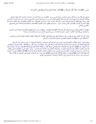 5/23/25, 3:47 PM تارﺎﻣﻹا ﻲﻓ ﺔﯾﻛﯾرﻣأ ﺔﯾرﺎﺟﺗ ﺔﻣﻼﻋ فﻟأ 66 و ﺔﻛرﺷ فﻟأ 13 :دﺎﺻﺗﻗﻻا رﯾزو - Fana News