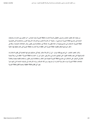 ةﺪﯾﺪﺟ ﺔﻠﺣﺮﻣ ﻰﻟإ ﺖﻠﻘﺘﻧا ”ﺔﯾوﻮﻨﻟا ﺔﻗﺎﻄﻠﻟ تارﺎﻣﻹا“ نأ ﻰﻟإ ًاﺮﯿﺸﻣ ،ﻲﻜﯾﺮﻣﻷاو ﻲﺗارﺎﻣﻹا ﻦﯿﺒﻧﺎﺠﻟا ﻰﻠﻋ ةﺮﯿﺒﻜﻟا ةﺪﺋﺎﻔﻟﺎﺑ دﻮﻌﺗ ﻲﺘﻟا ﺔﯿﺠﯿﺗاﺮﺘﺳﻹا
