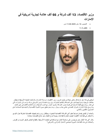 ناطبترت ةيكيرملأا ةدحتملا تايلاولاو تاراملإا ةلود نإ ،داصتقلاا ريزو ،يرملا قوط نب اللهدبع يلاعم لاق /ماو/ ويام 15 يف يبظوبأ