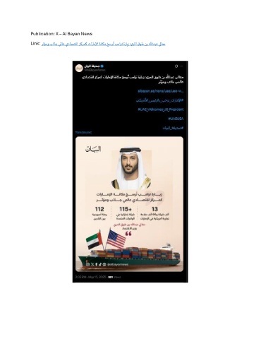 Publication: X – Al Bayan News ٌ Link: رثؤمو بذاج يلماع يداصتقا زكرمك تاراملإا ةناكم خسرت بمارت ةرايز :يرلما قوط نب اللهدبع يلاعم