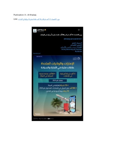 Publication: X – Al Khaleej Link: تاراملإا يف ةيكيرمأ ةيراجت ةملاع فلأ 66 و ةكرش فلأ 13 :داصتقلاا ريزو