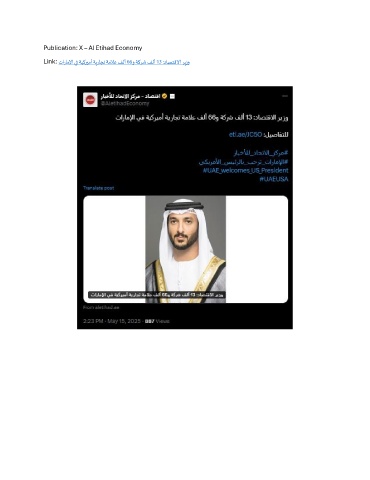 Publication: X – Al Etihad Economy Link: تاراملإا يف ةيكريمأ ةيراجت ةملاع فلأ 66 و ةكرش فلأ 13 :داصتقلاا ريزو