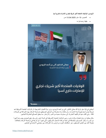 دعت ةيكيرملأا ةدحتملا تايلاولا نأ ،ةيجراخلا ةراجتلل ةلود ريزو ،يدويزلا دمحأ نب يناث روتكدلا يلاعم دكأ /ماو/ ويام 15 يف يبظوبأ