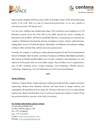 laboratory projects across the UAE, both in the public and private sectors, including for