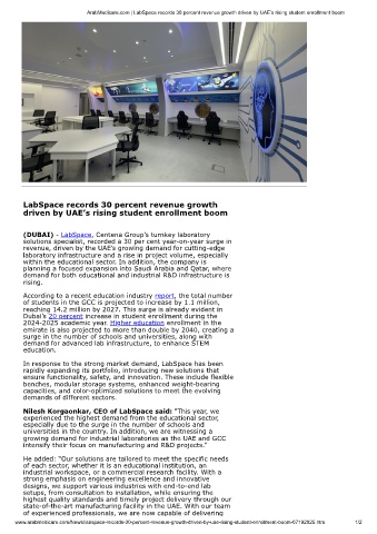 www.arabmedicare.com/News/labspace-records-30-percent-revenue-growth-driven-by-uae-rising-student-enrollment-boom-07192025.htm 1/2