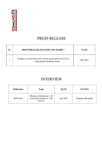 No. PRESS RELEASES (ENGLISH AND ARABIC) DATE