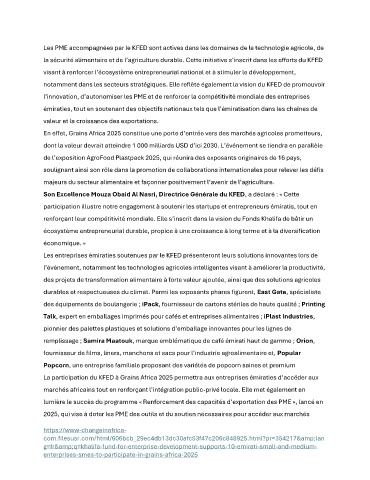 La participation du KFED à Grains Africa 2025 permettra aux entreprises émiraties d’accéder aux