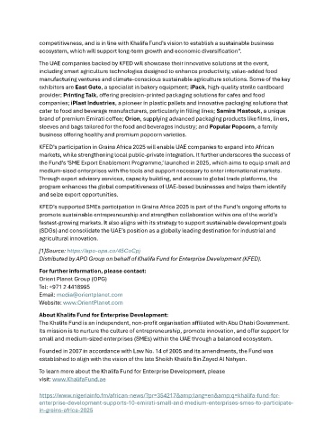 KFED’s participation in Grains Africa 2025 will enable UAE companies to expand into African